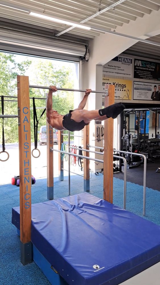 Übungen die später angestrebt werden können, sind z.B. Muscle Ups, Human Flag, Handstand Push Ups oder Front Lever.